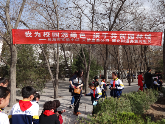 4月23日下午,海北街道办事处黄河社区联合实验小学、天佑置业公司共同举办“我为校园添绿色,携手共创园林城”活动,由黄河社区与天佑置业公司共同捐赠100棵秋海棠树苗,实验小学的同学们每人认领一棵树苗,并义务植树。